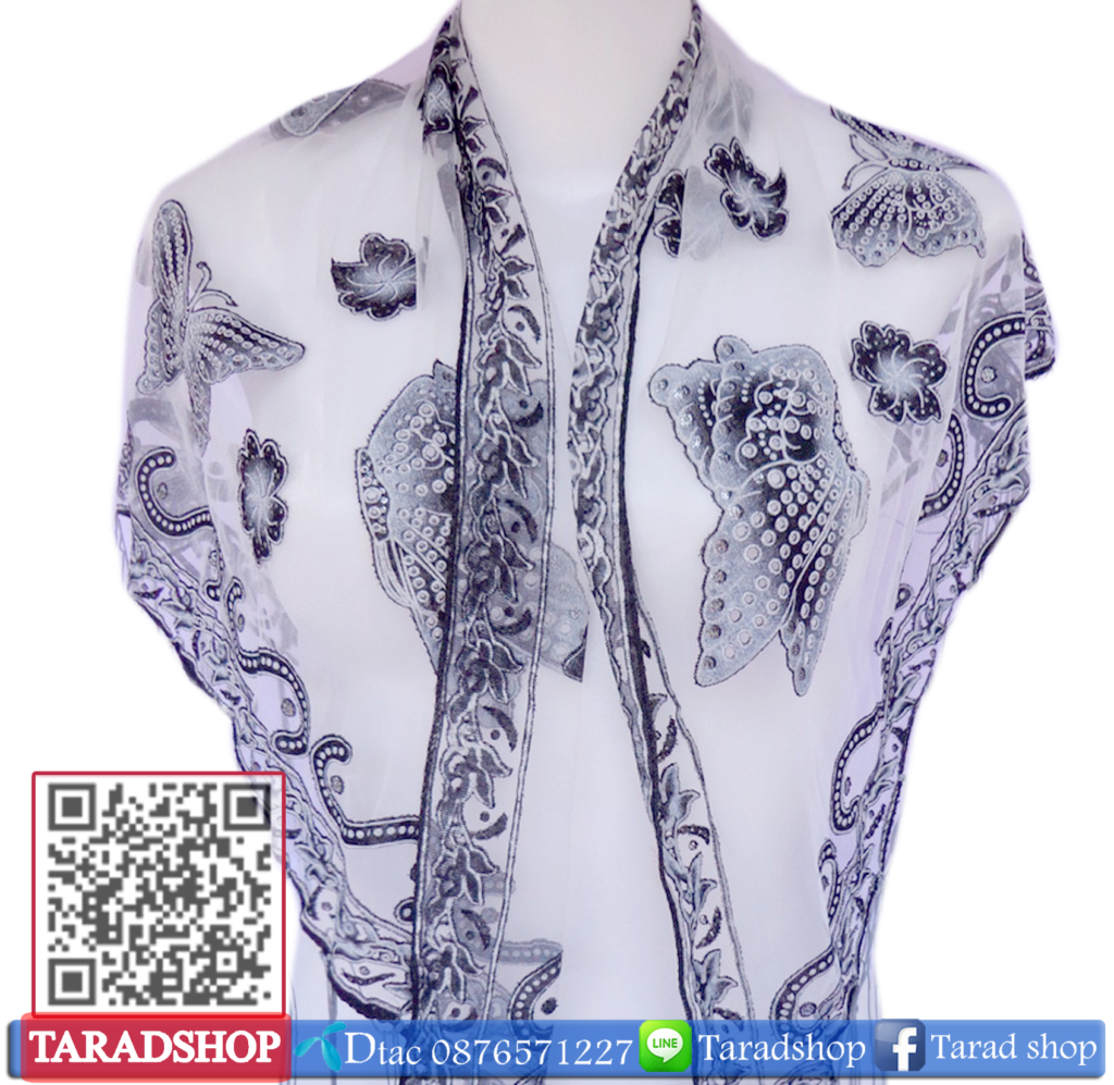 - ผ้าคลุมไหล่ (ขาวเท่าผสมดำ)